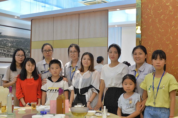 放暑假了。小朋友和大朋友一起吃飯……